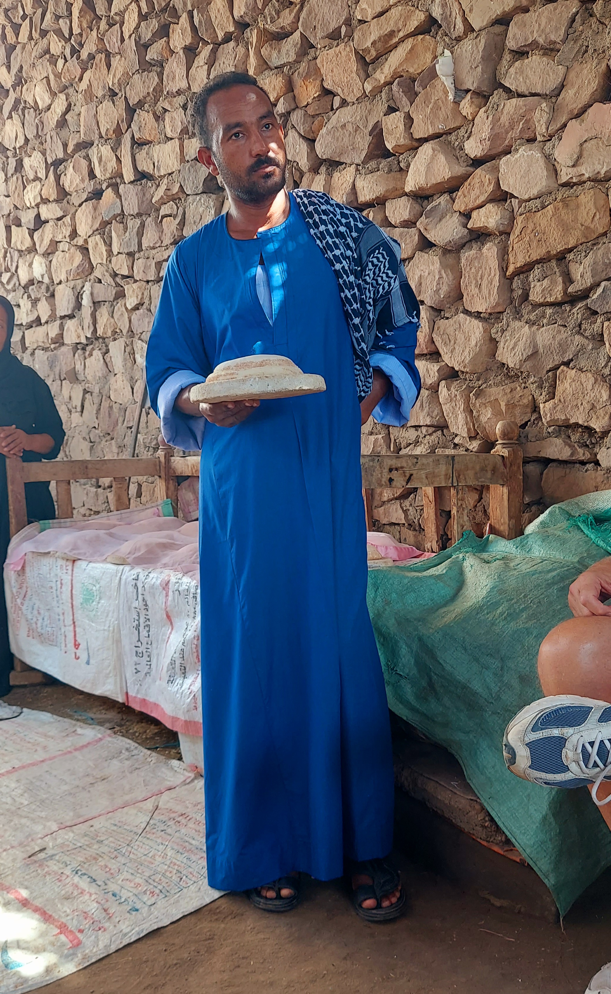 Our host, Sayed, showing us a loaf of sun bread waiting to be baked. They form them and place them on trays made of egg cartons (think paper mache)