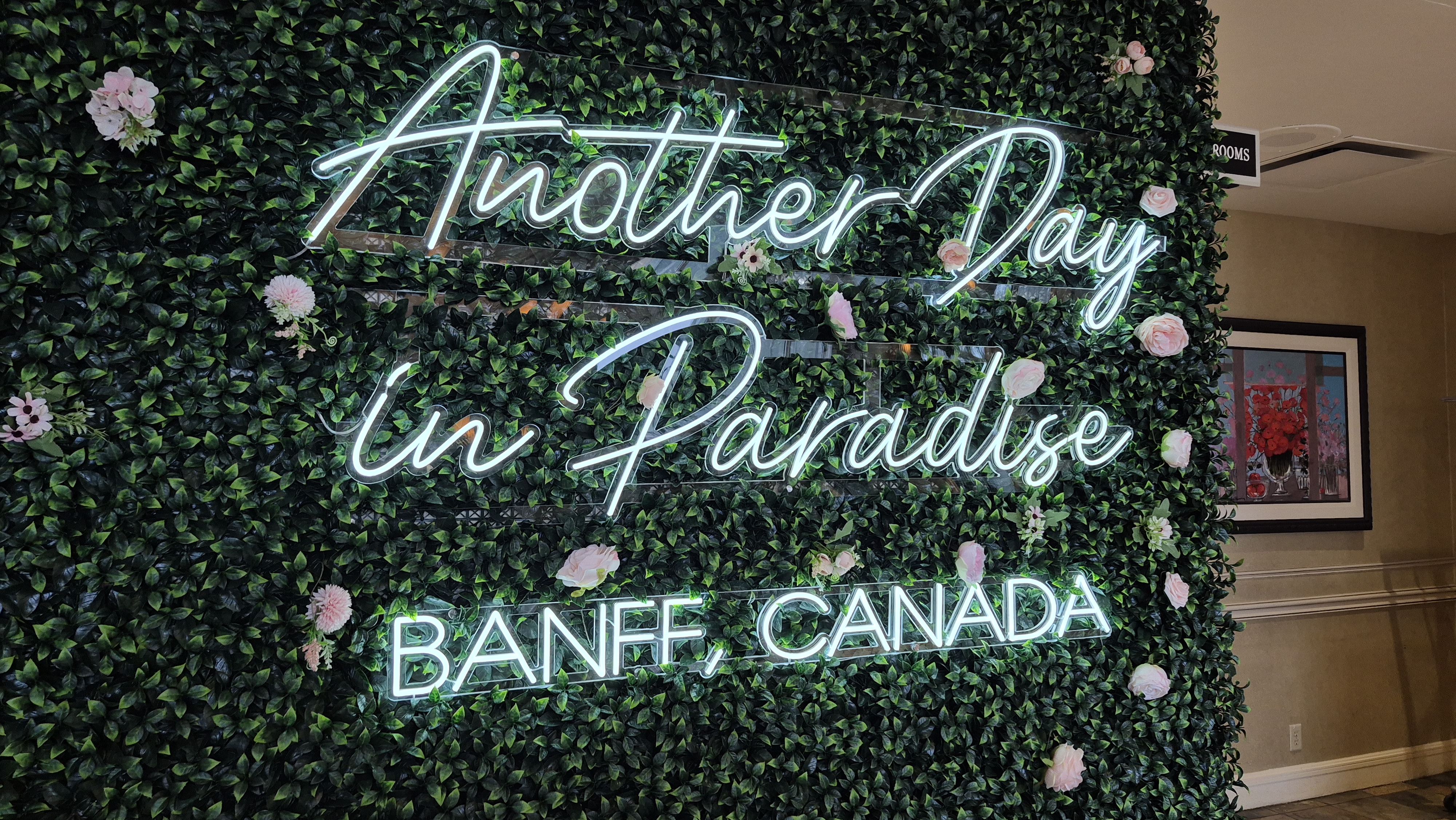 Late in the morning we bussed from Lake Louise to the Rimrock Resort outside of Banff. This wall hanging caught my eye ????