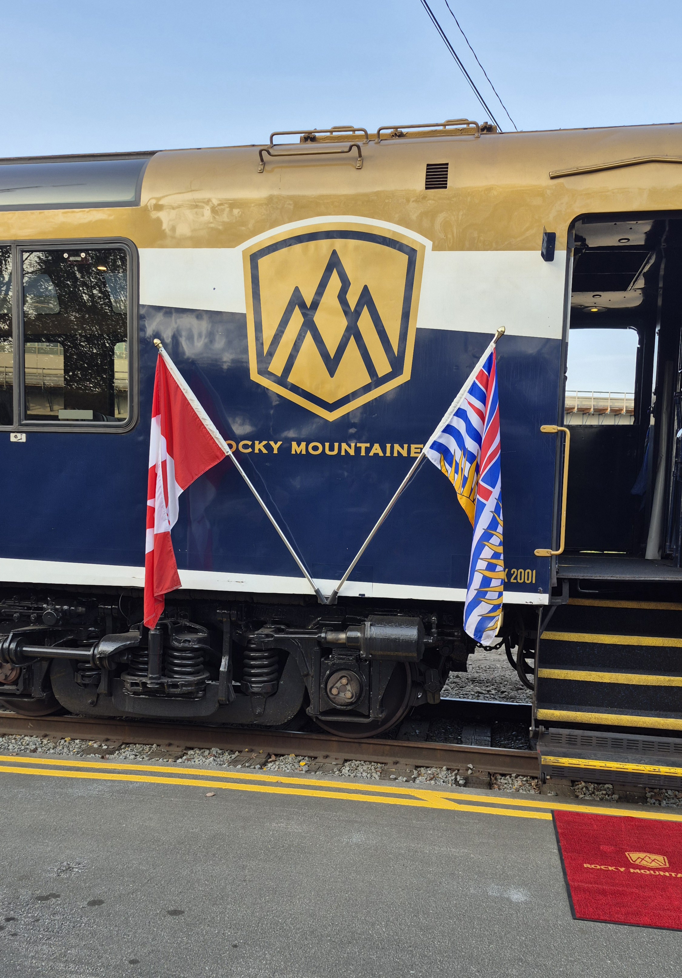 At the stops along the route they put the Canadian flag and Province flag by the door of each passenger car